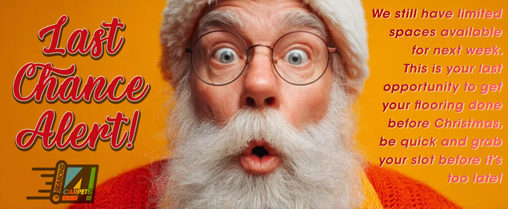 Last Chance Alert! We still have limited spaces available for Thursday and Friday next week. This is your last opportunity to get your flooring done before Christmas, be quick and grab your slot before it’s too late!